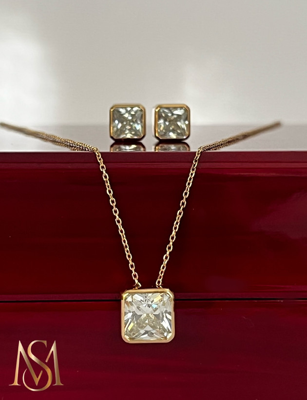 گردنبند نگین مکعب با وزن ۱٫۸۳۰ گرم و سنگ کسر شده، همراه با فاکتور معتبر.