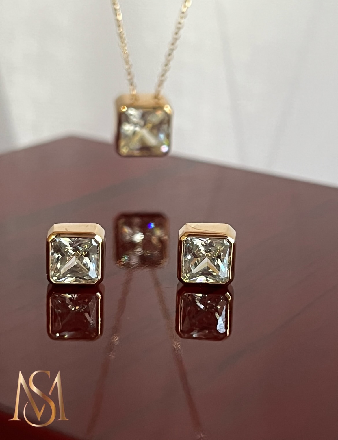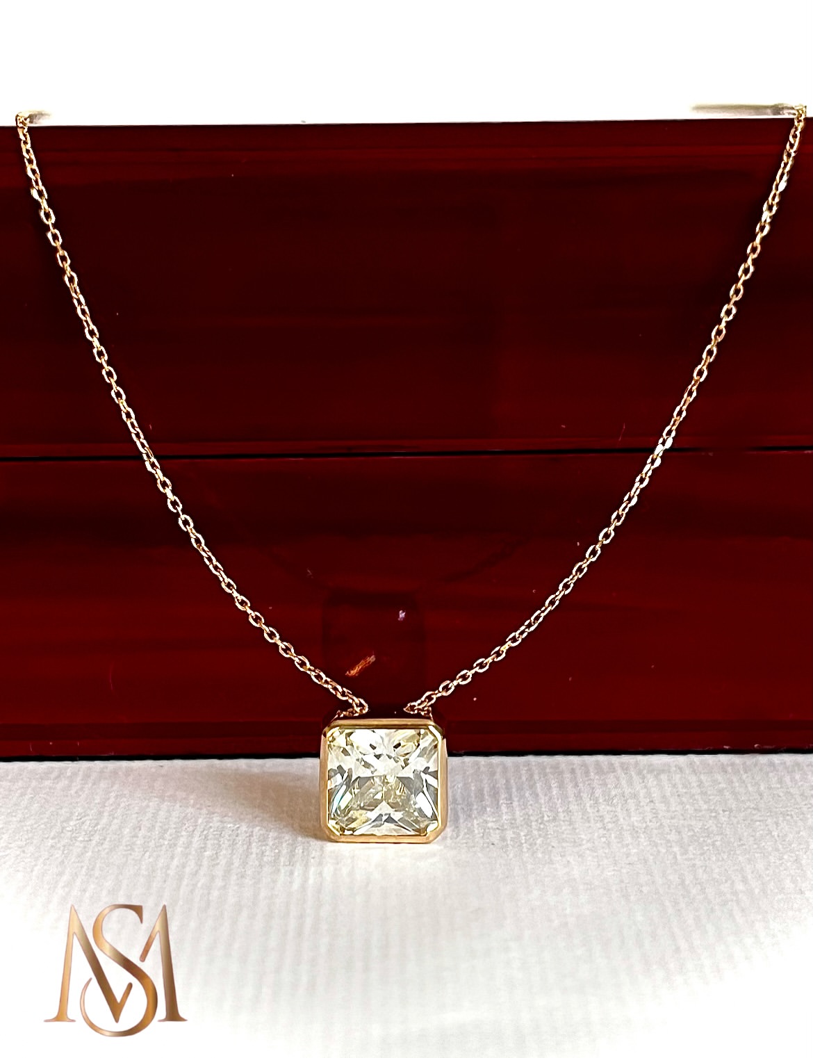 گردنبند نگین مکعب با وزن ۱٫۸۳۰ گرم و سنگ کسر شده، همراه با فاکتور معتبر.